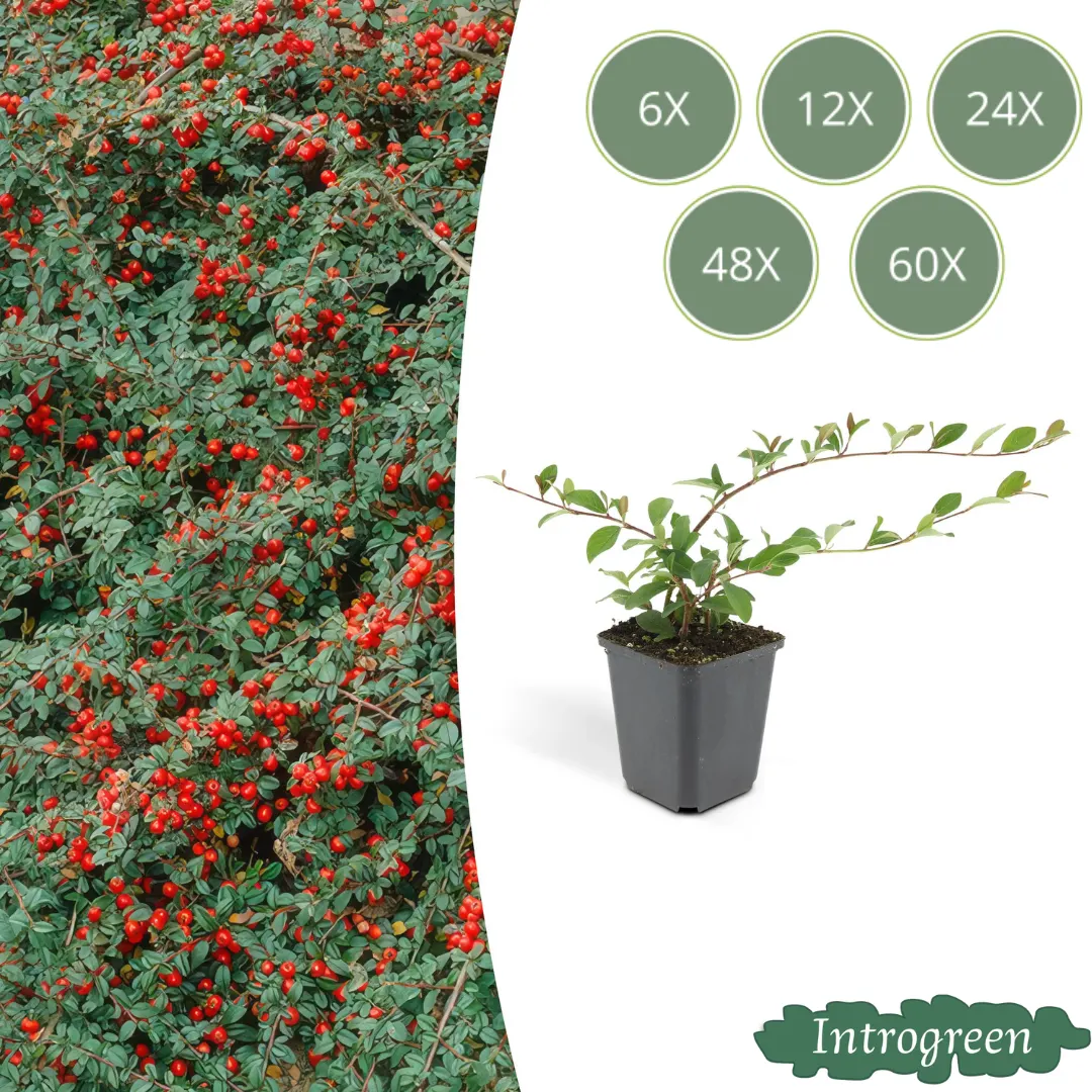6 bis 60 Stück Zwergmispel / Cotoneaster dammeri, Vielseitiger Bodendecker, Weiße Blüten, Rote Beeren im Herbst - ↕10-25cm - Ø9cm – Cotoneaster dammeri | ↕10-25 cm | Ø9 cm