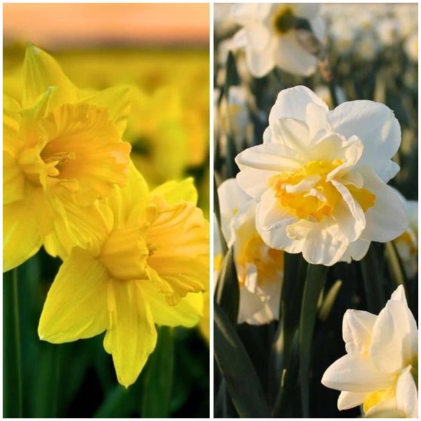 Narzissen in voller Blüte: Genießen Sie den sonnigen Charme von Salou und die raffinierte Pracht von Dutch Master, perfekt um Ihren Außenbereich zu verschönern.