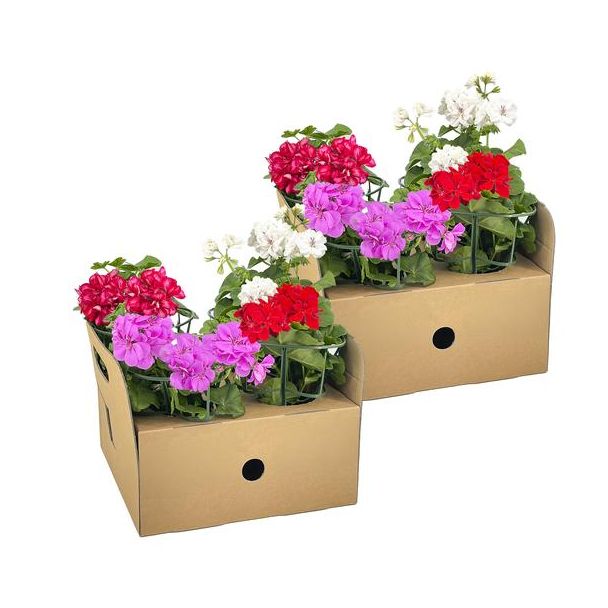 8 Stück Hängende Geranie oder auch Säulen-Geranie genannt, Schöne Mischung aus vier Farben Rot, Weiß, Mexikanisches Rubin und Violett, Terrassenpflanze, Balkons, Einjährige Pflanze, Pelargonium peltatum Mischung Ø12 cm - ↕20 cm