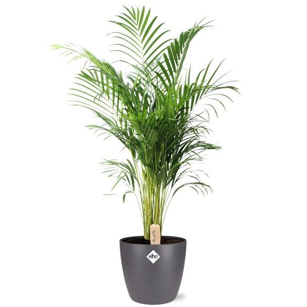 Die Goldpalme ist eine elegante, luftreinigende Zimmerpflanze, die mit ihren geschwungenen, frischgrünen Blättern ein tropisches Flair in jeden Raum bringt. Diese wunderschöne Dypsis Lutescens, auch bekannt als Areca-Palme, ist ein Symbol für Ruhe und natürliche Eleganz. Die Pflanze wird in einem hochwertigen Elho Brussels-Topf in der Farbe Antrazit geliefert, sodass sie sofort einsatzbereit ist – ohne umtopfen zu müssen. Die Kombination aus lebendigem Grün und modernem Antrazit macht diese Pflanze zu einer stilvollen Ergänzung für jedes Interieur, von klassisch bis industriell.