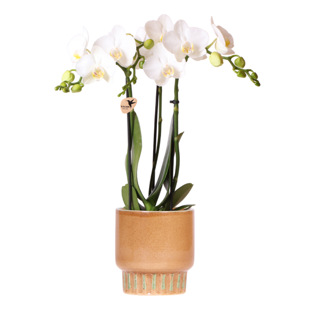 Diese Schmetterlingsorchidee mit 2 oder 3 Zweigen wird in einem Keramiktopf geliefert. Diese Orchidee, auch bekannt als Multiflorale Orchidee aufgrund ihrer vielen kleinen Blüten, sorgt für eine raffinierte und elegante Ausstrahlung. Durch ihre zeitlose Farbe fügt sich diese Orchidee mühelos in jedes Interieur ein, sei es modern, klassisch oder ländlich. Die Schmetterlingspracht bringt eine frische und ruhige Atmosphäre ins Wohnzimmer, Schlafzimmer oder sogar ins Büro.