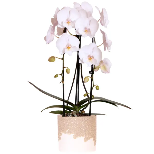 Diese Schmetterlingsorchidee mit 2 oder 3 Zweigen wird in einem Keramiktopf geliefert. Diese Orchidee, auch bekannt als Multiflorale Orchidee wegen ihrer vielen kleinen Blüten, sorgt für ein raffiniertes und elegantes Erscheinungsbild. Durch ihre zeitlose Farbe fügt sich diese Orchidee mühelos in jedes Interieur ein, egal ob modern, klassisch oder ländlich. Die Schmetterlingspracht bringt eine frische und ruhige Atmosphäre ins Wohnzimmer, Schlafzimmer oder sogar ins Büro.