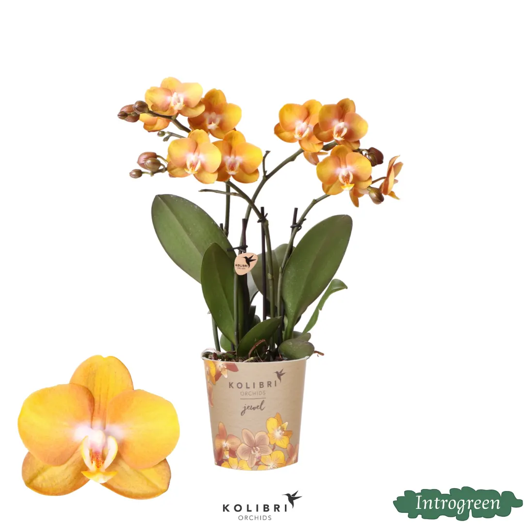 Schöne Schmetterlingsorchidee Jewels Las Vegas, Farbe Orange/Gold, Geschenkidee, Topfgröße Ø12cm, blühende Zimmerpflanze – Phalaenopsis orchidee | ↕45 cm | Ø12 cm