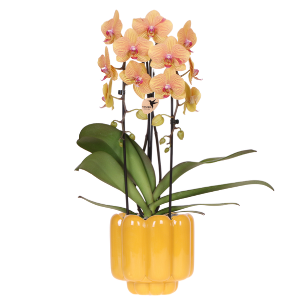 Siegesorchidee Sunny Bunny in Retro Ocker Zierpot – Phalaenopsis Orchidee | ↕45 cm