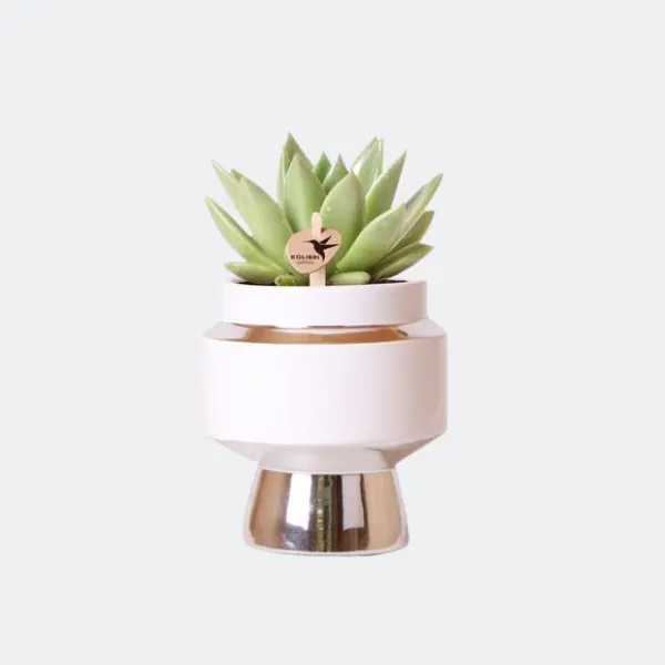 eine elegante Sukkulente in einem luxuriösen silbernen Topf!“