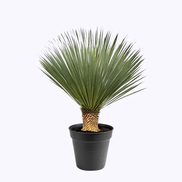 Die Yucca ist eine robuste und stilvolle Pflanze, die sowohl drinnen als auch draußen ein auffälliger Blickfang ist. Die Yucca rostrata kombiniert eine elegante Erscheinung mit beeindruckender Stabilität. Dank ihrer blaugrünen Blätter und des kräftigen Stammes passt diese Wüstenpflanze perfekt in moderne Innenräume sowie mediterrane Gärten. Mit einer Höhe von 100 bis 120 cm ist diese ausgewachsene Pflanze sofort eine wertvolle Bereicherung für deine grüne Sammlung.