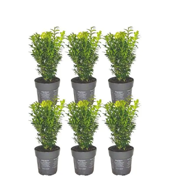 Zusammenfassend ist der Buchsbaum eine klassische und vielseitige Heckenpflanze mit glänzend grünen Blättern und kompaktem Wuchs. Er gedeiht gut an sonnigen bis halbschattigen Standorten und ist ideal für die Schaffung von straffen und formellen Hecken. Bestellen Sie jetzt den Buchsbaum in einem Topf mit einem Durchmesser von 12 cm und einer Lieferhöhe von ca. 25 cm und genießen Sie bald eine zeitlose und gepflegte Ausstrahlung in Ihrem Garten!