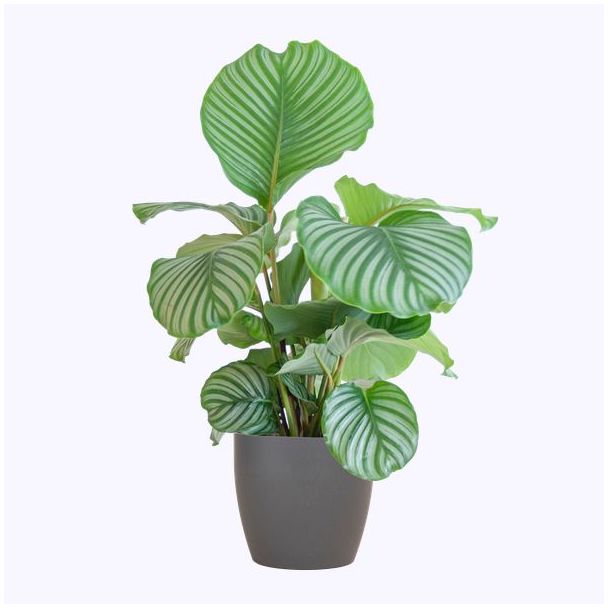 Calathea Orbifolia mit grauem Übertopf - 65 cm - Ø21