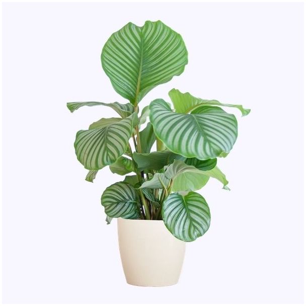 Ursprünglich stammt die Calathea aus den Regenwäldern Südamerikas, wo sie in feuchten und schattigen Umgebungen gedeiht. Aufgrund der Größe und Festigkeit der Blätter werden sie gelegentlich als Verpackungsmaterial verwendet. In Südamerika werden Fischprodukte manchmal in den Blättern der Calathea verpackt. Wir lassen sie jedoch gerne auf der Fensterbank erstrahlen!