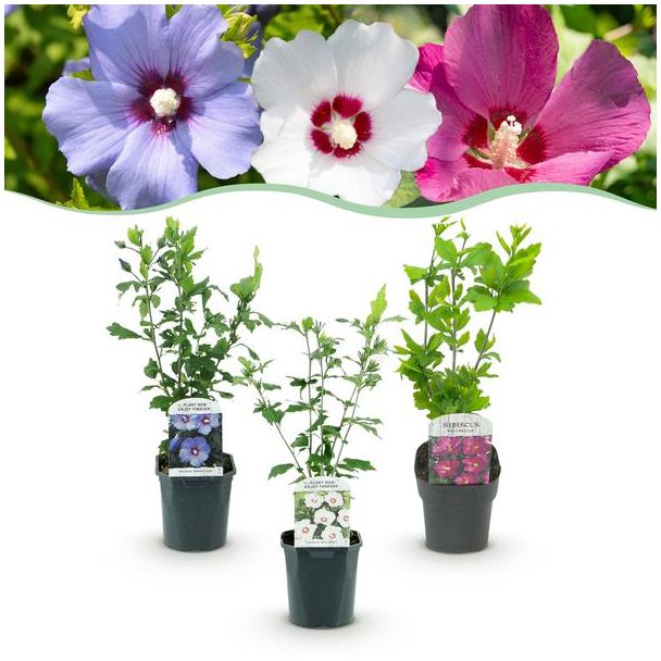 3 Stück Althea 3 Farbenmix Rosa - Weiß - Blau – Hibiscus syriacus ‘Tricolour’ | ↕45 cm