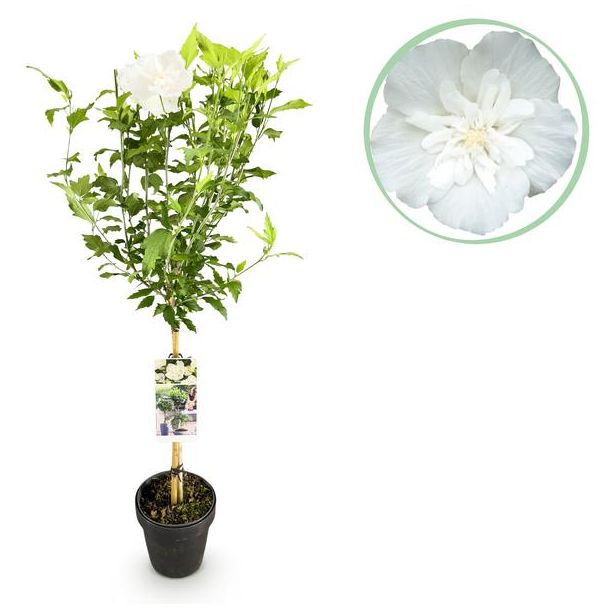 Hibiskus auf Stamm Weiß – Hibiscus syriacus ‘White Chiffon®’ (op stam) | ↕90 cm | Ø19 cm