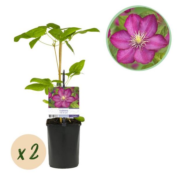 Grüne BoutiQ - Klimapflanze - Clematis Ville de Lyon - Blüte Rosa - Wenig Pflege - 2 Pflanzen - Topf 11cm Höhe 40cm