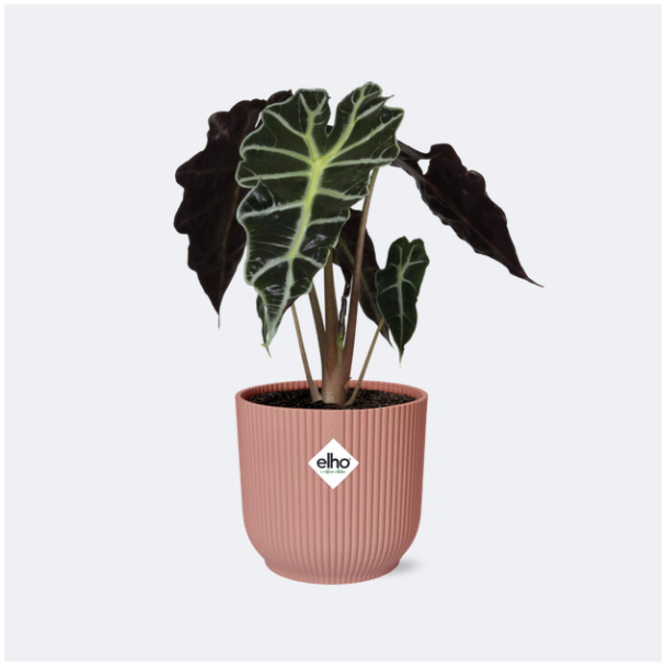 Elefantenohren in ELHO Vibes Faltfarbe Rosa, Grüne Pflanze, Tropisch, Charakteristisches Blatt, Alocasia Polly - Ø14cm - ↕40cm
