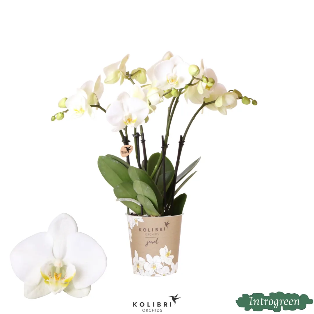 Schöne Schmetterlingsorchidee Jewel Gent, Farbe Weiß, Geschenkidee, Topfgröße Ø12cm, blühende Zimmerpflanze – Phalaenopsis orchidee | ↕45 cm | Ø12 cm
